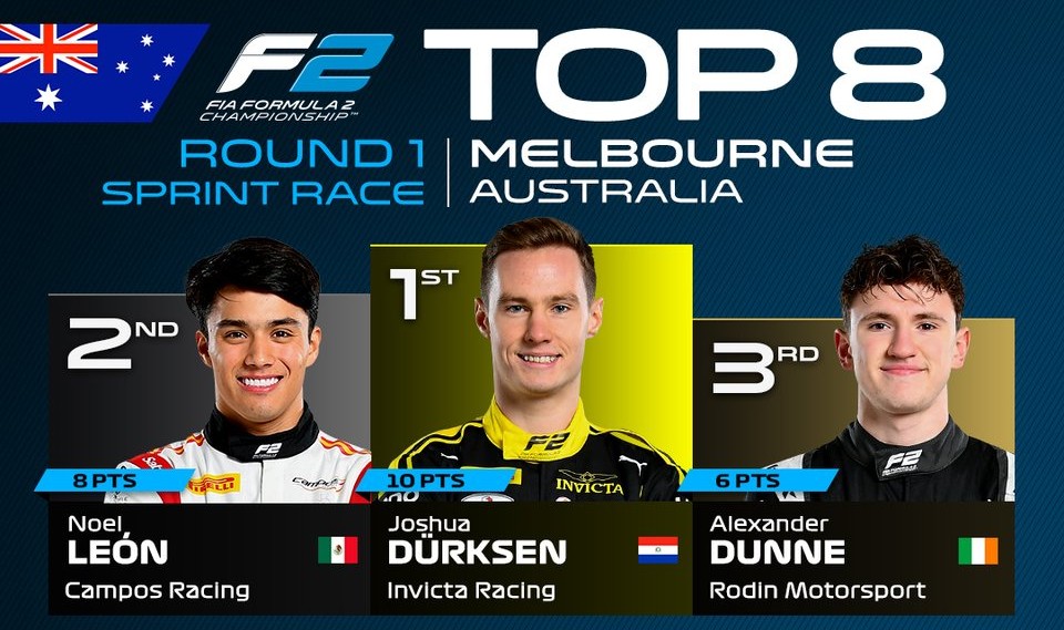 La actividad continuará con la carrera principal de Fórmula 2 en Melbourne, programada para este sábado a las 18:25 horas (tiempo del centro de México). Noel León arrancará desde la cuarta posición, mientras Villagómez lo hará desde el lugar 16.