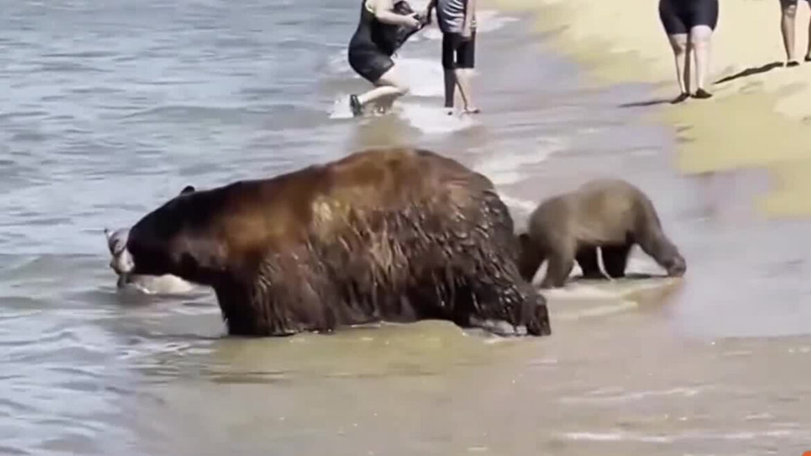 Mamá osa y sus ositos se toman un descanso en la playa: ¡El encuentro más tierno!
