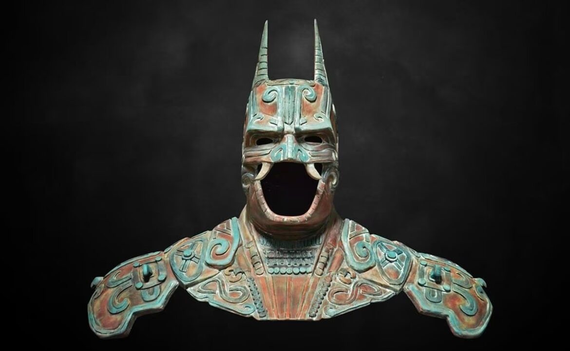 Su estudio realizó una réplica del busto con el que se disfraza el personaje Bruce Wayne y lo moldeó con motivos mayas y referencias de la forma en que fue Camazotz, y el resultado fue la foto principal que ilustra este texto.La reinterpretación, por supuesto, maravilló a todos los que lo vieron y el busto fue llevado a la exposición Batman que se realizó en febrero de 2015 en el Museo Mexicano del Diseño (Mumedi).