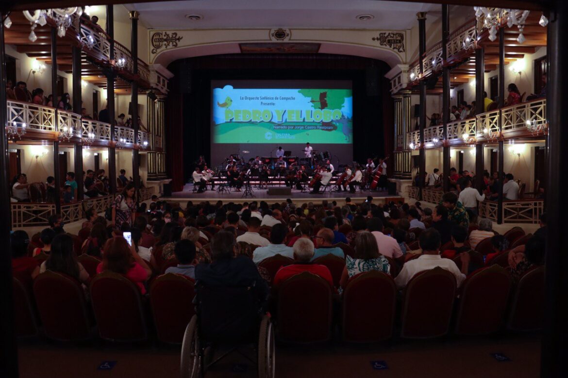 La Orquesta Sinfónica de Campeche (OSCAM) ofreció el sábado 22 de abril la obra “Pedro y el lobo”, autoría de Serguéi Prokófiev, en el Teatro de la Ciudad Francisco de Paula Toro, concierto dirigido por el maestro Eligio Fuentes Rosado y narrado por el actor Jorge Castro Realpozo. A la par de la música, se transmitió una animación de la historia de Pedro, un niño soviético que vive con su abuelo leñador en una casa del bosque; las y los asistentes estuvieron atentos hasta el desenlace sorpresivo, siguiendo a cada personaje representado por un instrumento de la orquesta.