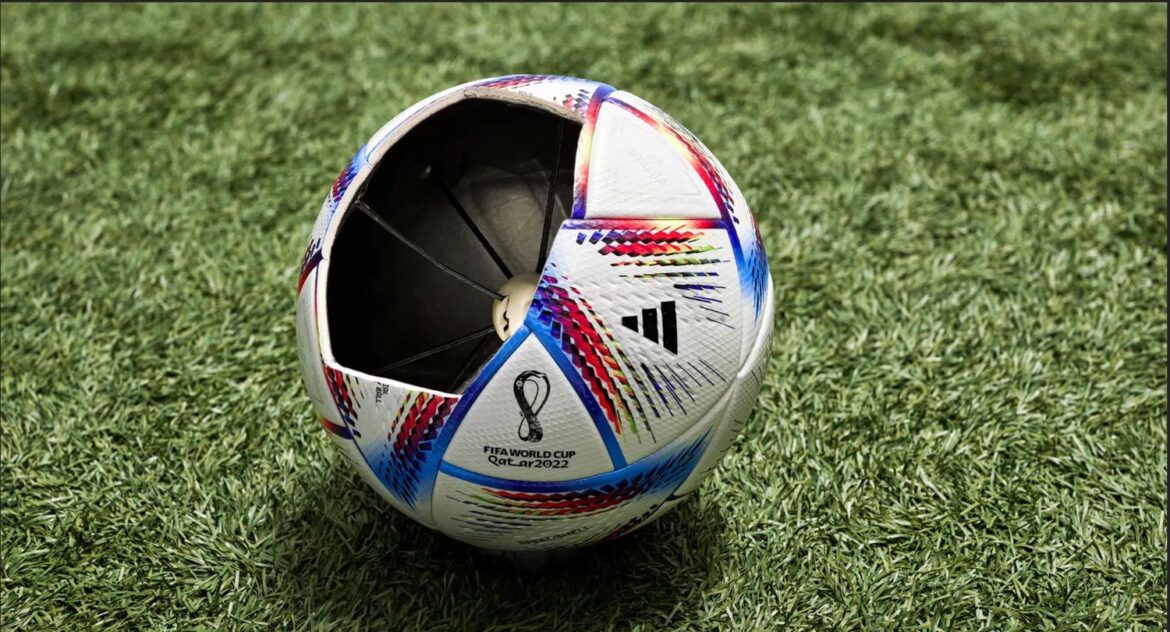 Con nombre propio, Al Rihla (en árabe, «El viaje»), es el balón oficial de Adidas para Qatar 2022. Este balón inteligente cuenta con un sensor de unidad de medición inercial (IMU) en el interior del balón. Este sensor enviará los datos del balón a la sala de operaciones de vídeo, lo que permitirá una detección muy precisa del punto de saque. El chip se encuentra dentro del balón y rastrea cada toque del juego a una velocidad de 500 veces por segundo. El sensor se mantiene en el centro del balón mediante un sistema de suspensión creado por el fabricante Adidas.