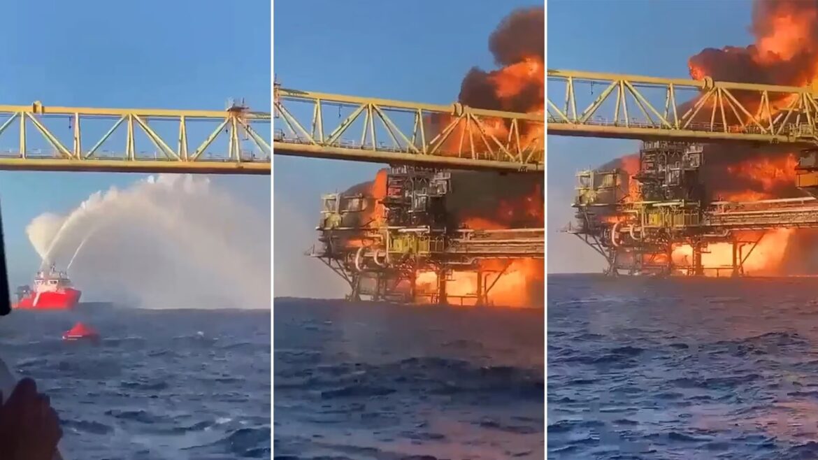 ¡Impactante! Así fue el incendio de la plataforma de Pemex en Campeche