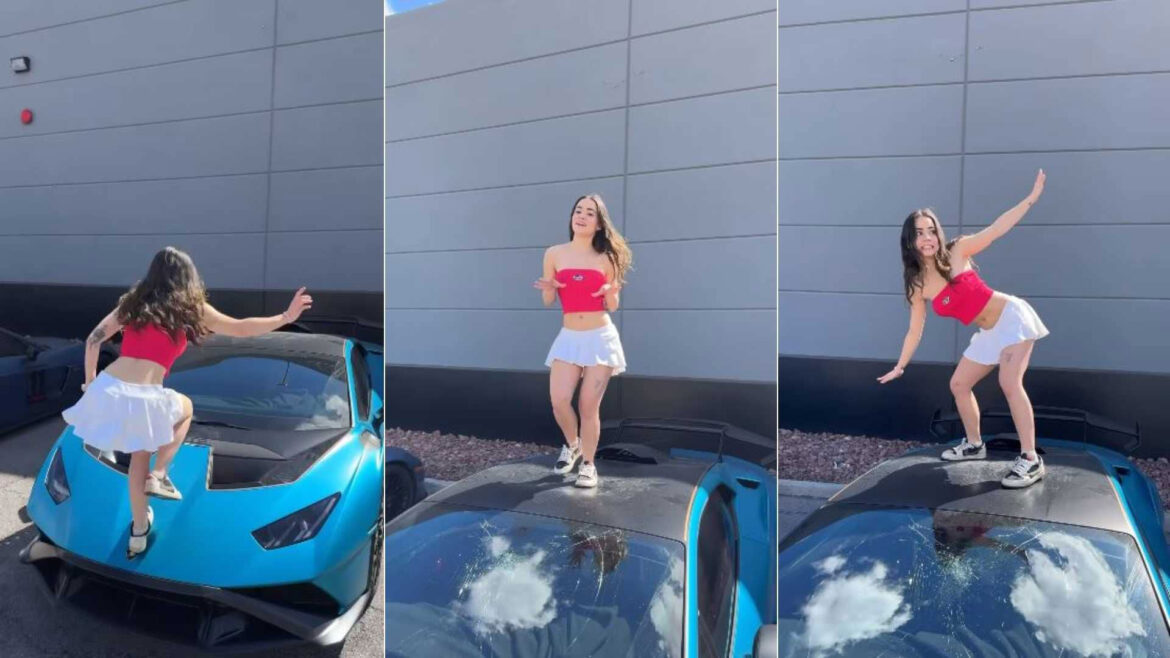Influencer destroza parabrisas de lamborghini al intentar un baile atrevido