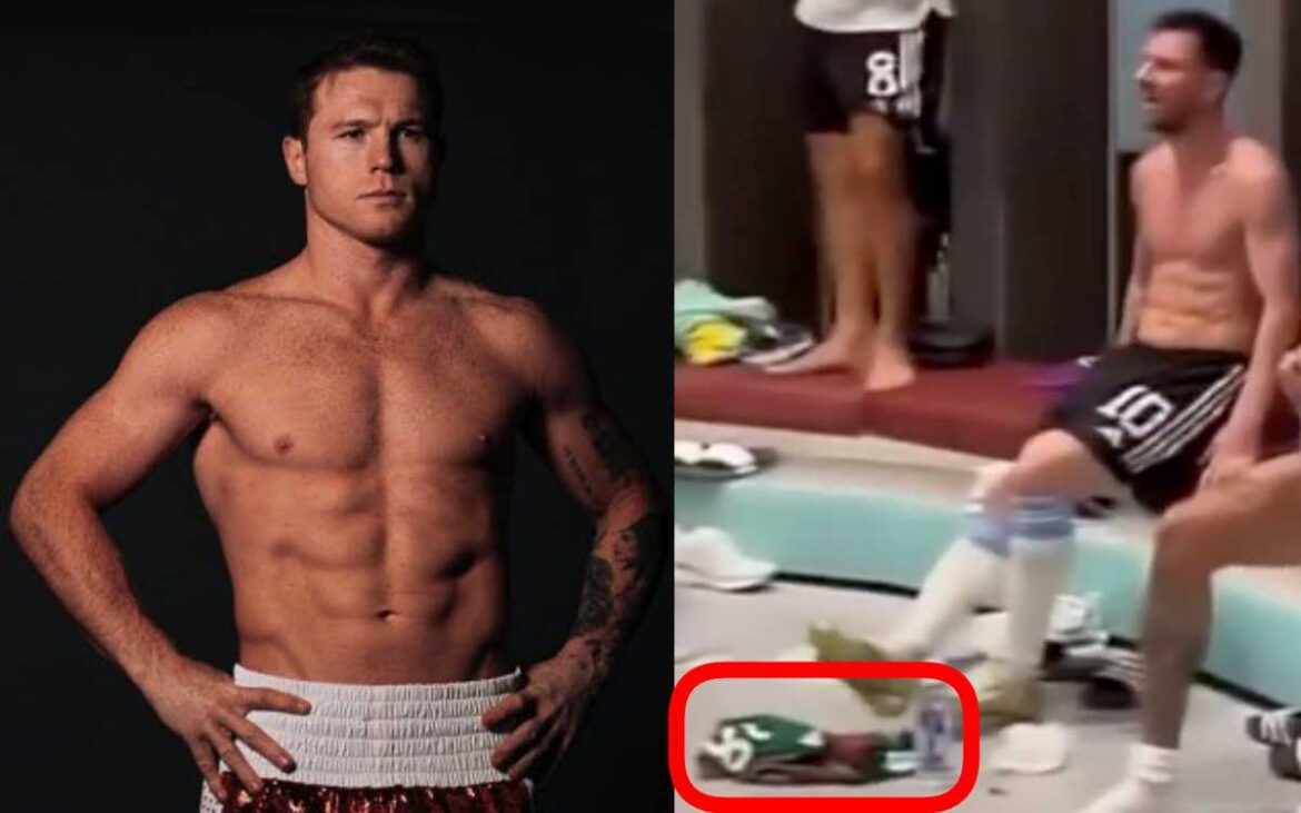 En el video de la celebración se observa que Messi tiene debajo de sus pies una playera que habría intercambiado con un seleccionado mexicano. La estrella del PSG desplaza el jersey con el pie para retirarse el calzado. Esa acción fue interpretado en redes sociales por algunos aficionados mexicanos como una falta de respeto Messi, entre ellos ‘Canelo’ Álvarez.