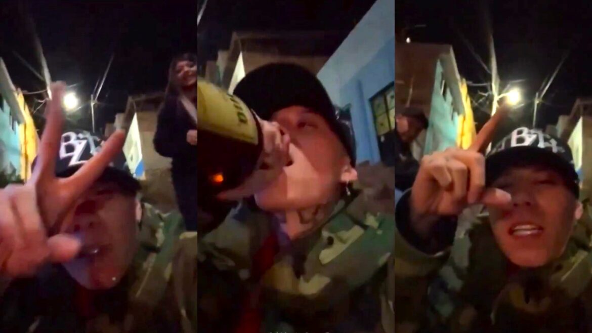 Durante la transmisión, el famoso cantante mencionó que estaba en su barrio tirando balazos y aventando cuetes para después darle un trago a la cerveza que estaba consumiendo en la vía pública. “Ahí ´tamos al millón, ¡Feliz Navidad!, saludos a todo el barrio, a toda la bandera”, expresó Santa Fe Klan tras beber alcohol.