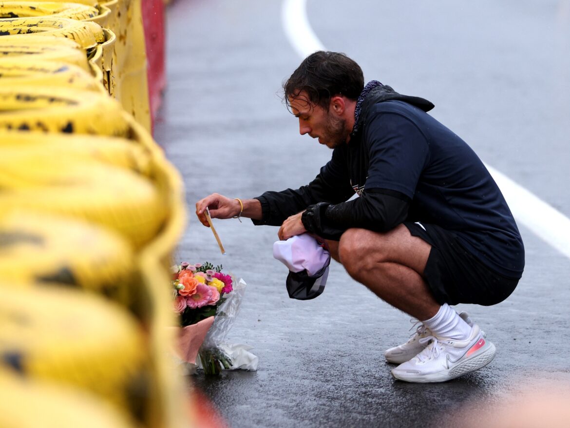 Gasly se ubicó al frente del «pelotón», con un gran ramo de flores en sus manos. Junto a él, algunos pilotos de la Fórmula 1 -Esteban Ocon y Zhou Guanyu dijeron presente-, la F2 y la F3. Y detrás, un gran número de miembros de los equipos de las tres categorías, todos vistiendo una remera especial que les entregó el Francés, con el número «19» -el número de dorsal que usaba Hubert y que la Fórmula 2 retiró tras su muerte- y la frase «Racing for Anthoine».