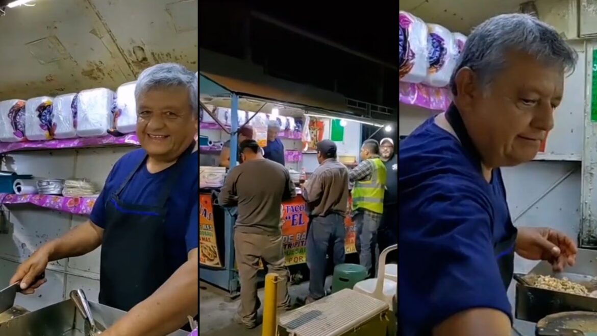 En la segunda escena, cuando se acercó hasta el propietario y taquero del lugar, lo grabó de cerca. Y el rostro del señor era muy similar al de López Obrador, incluso el color de las canas y el peinado dio la sensación que se trataba del presidente, por lo que la persona que subió el video expresó lo siguiente: