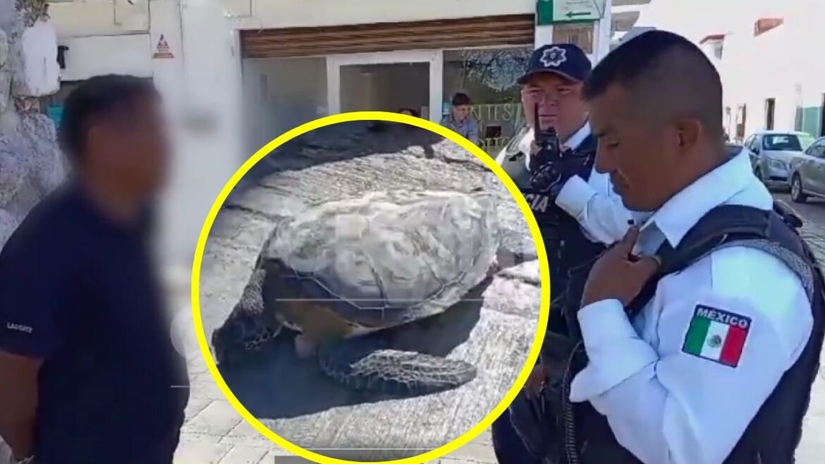 Los hechos ocurrieron cuando un grupo de ciudadanos observaron al hombre caminar sobre la calle 18 de la referida zona el cual cargaba la tortuga marina conocida como “caguama” el cual la presumía como su “mascota”, esto fue reportado al número de emergencias cuyos efectivos motorizados activaron un protocolo de búsqueda la cual culmino sobre el cruce de la 55.
